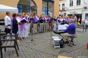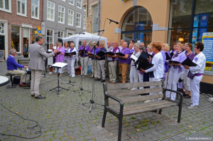 Zaterdag 2 juni was het CQ-koor present op het Zuivelplein in Bergen op Zoom, waar iedereen genoot van het Proefmeiconcert en lekkere hapjes.