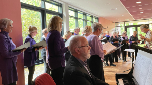 Het optreden hebben we afgesloten met Bella ciao, waarna we een groot applaus en lovende woorden van de voorzitter van de bewonersraad in ontvangst hebben genomen. Onze toegift – nogmaals het Bella ciao - hebben we enthousiast gegeven!